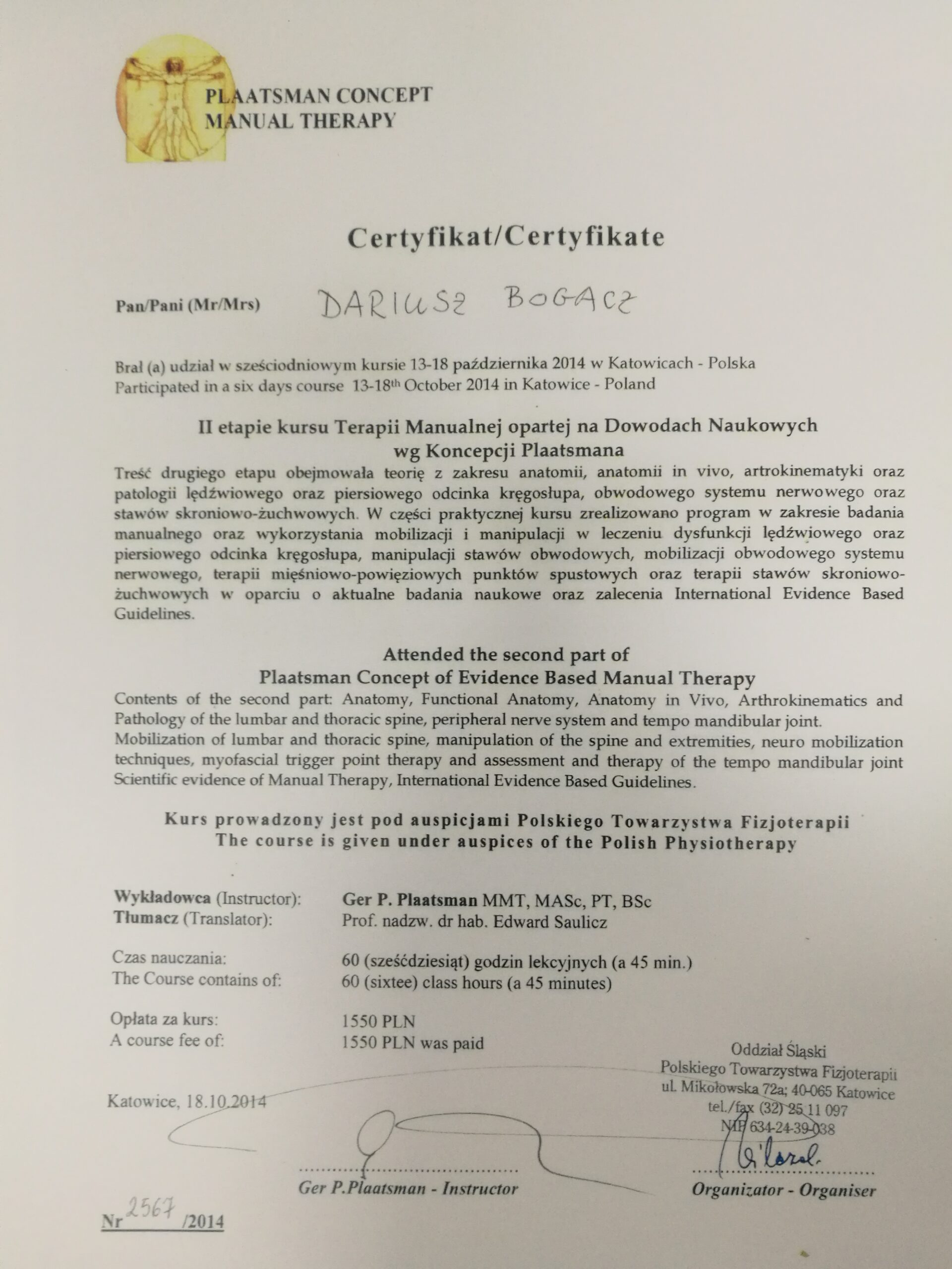 W FizjoStrefie stawiamy na ciągły rozwój i aktualną wiedzę medyczną. Regularnie uczestniczymy w specjalistycznych kursach, szkoleniach i konferencjach z zakresu ortopedii, traumatologii, terapii manualnej, osteopatii oraz fizjoterapii dziecięcej. Dzięki temu możemy oferować naszym pacjentom najskuteczniejsze i najbardziej aktualne metody leczenia, oparte na światowych standardach i dowodach naukowych.