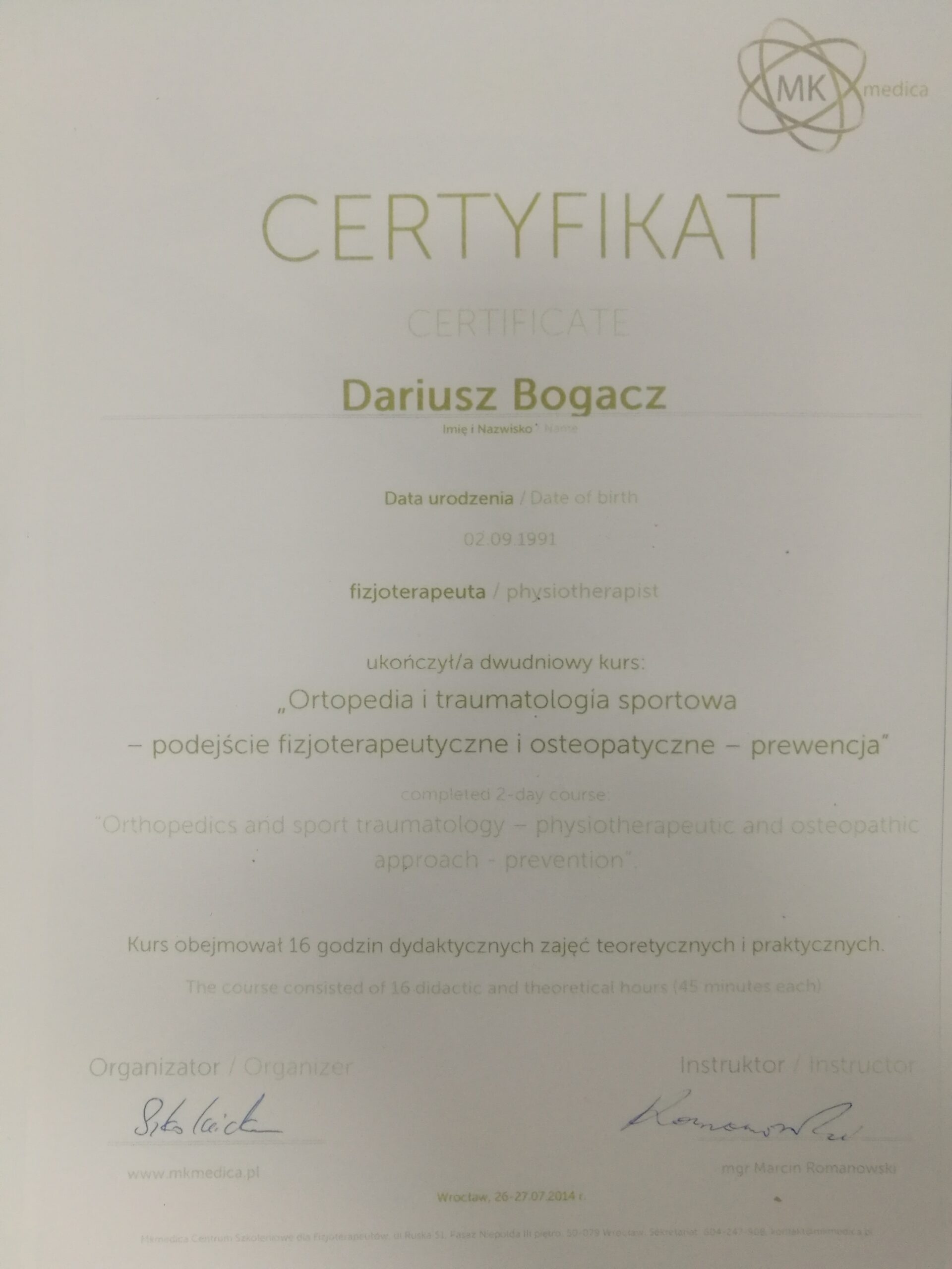 • Ortopedia i traumatologia sportowa – podejście fizjoterapeutyczne i osteopatyczne